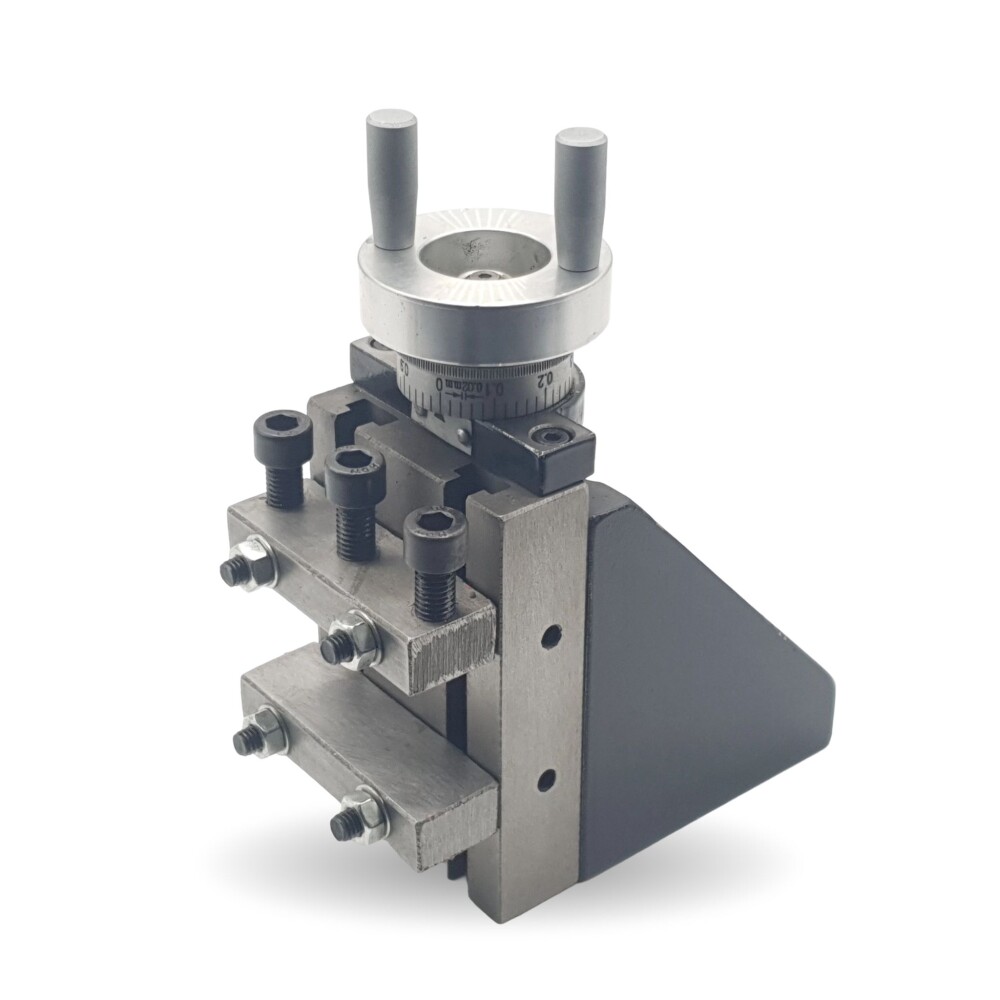 Универсальное фрезерное приспособление для установки на суппорт токарных станков. Небольшие габариты устройства позволяют применять его даже на малых настольных токарных станках типа ТЕХНОРЕАЛ 180х300, ТЕХНОРЕАЛ 210х400, TL0714, МИКРО, TL140x250, Универсал-3, WM 210 и других.