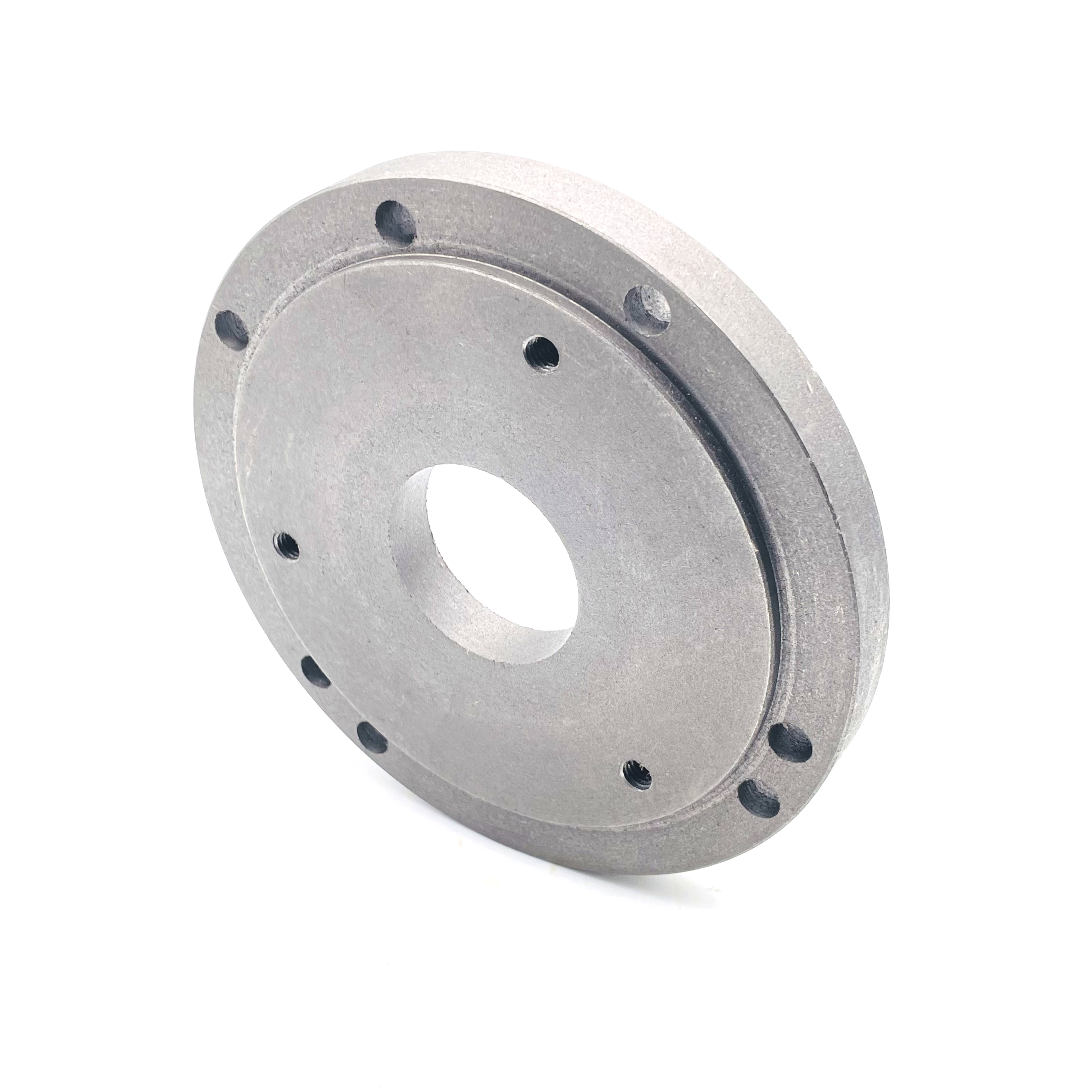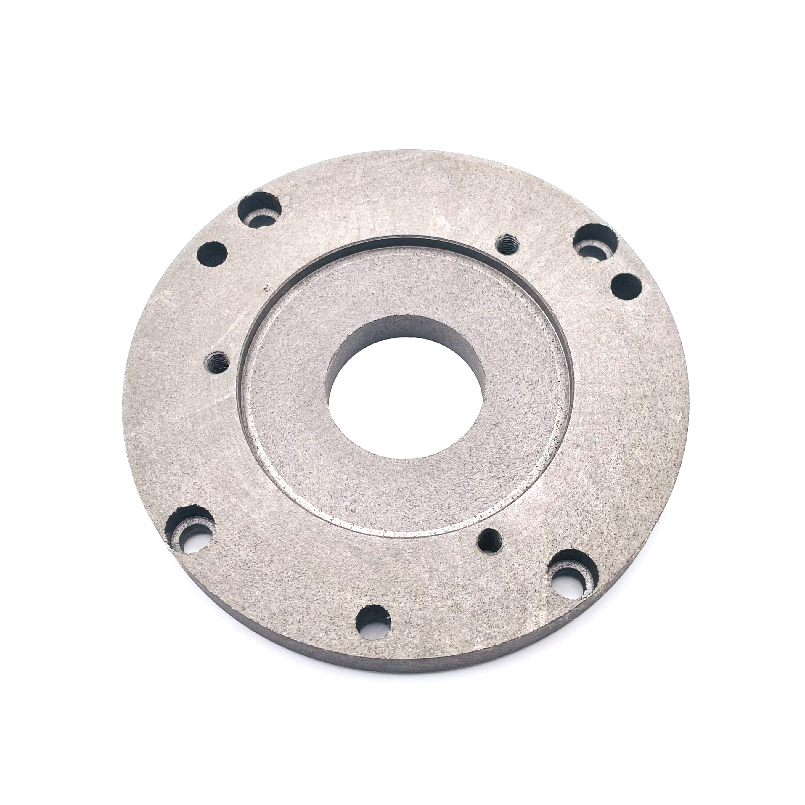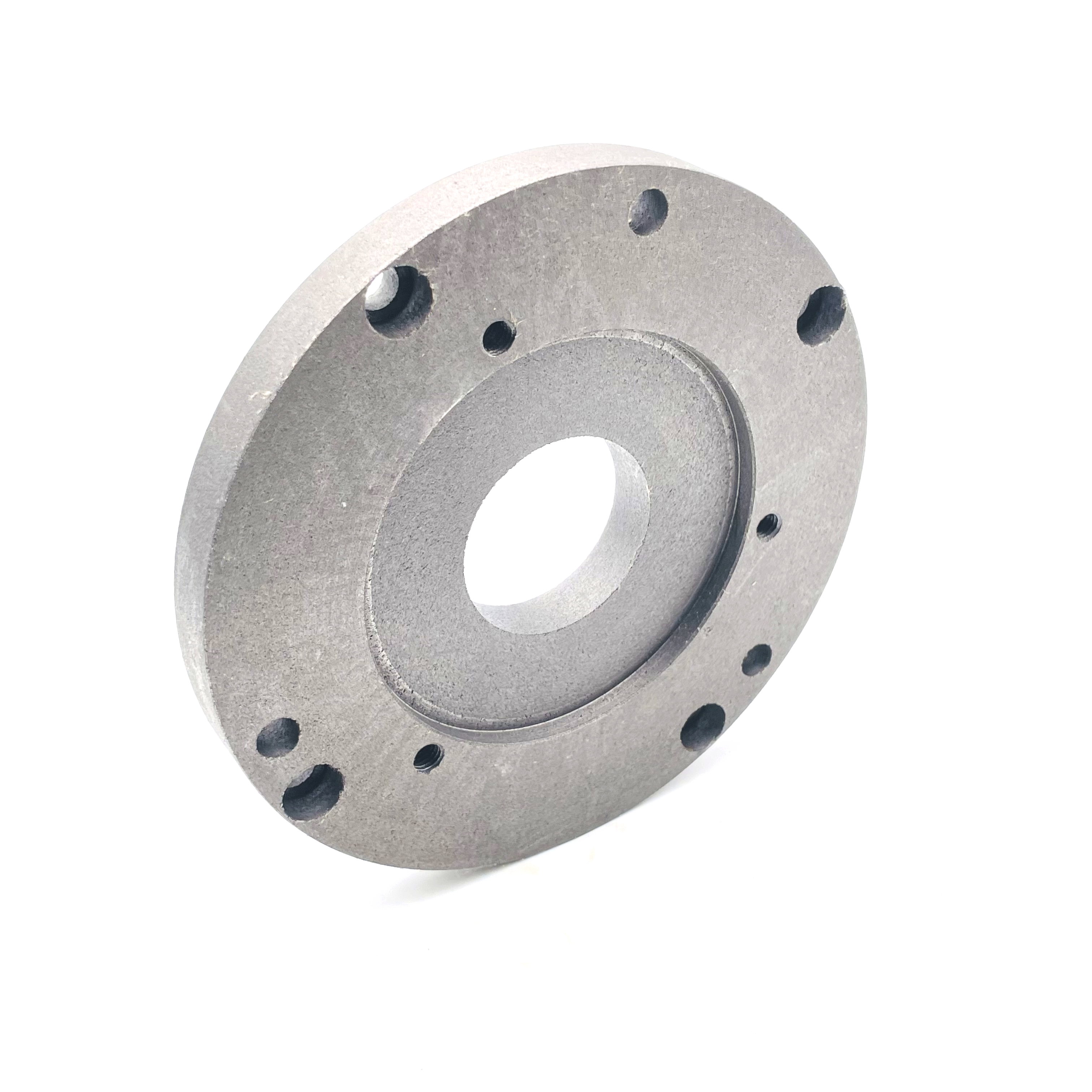 Стандартный установленный на токарном станке патрон 125 мм в некоторых случаях не позволяет зажимать требуемые заготовки, и иногда установка патрона большего диаметра позволяет решить задачу. В таких случаех необходим переходной фланец с посадочного места фланца шпинделя на посадочный поясок 160 мм патрона. Фланец от ТЕХНОРЕАЛ позволяет переходить со 125 мм патрона на 160 мм патрон. Посадочный диаметр и крепежные отверстия под установку патрона имеют стандартные размеры, что позволяет устанавливать на фланец 160 мм патроны различных производителей. Особенностью фланца является наличие крепежных отверстий для установки как 3х-кулачковых, так и 4х-кулачковых патронов с четырьмя крепежными отверстиями. Центровка посадочных размеров произведена с высокой точностью. Благодаря термообработке и качественной механической обработке фланец обеспечивает свою функциональность в течение длительного срока использования.