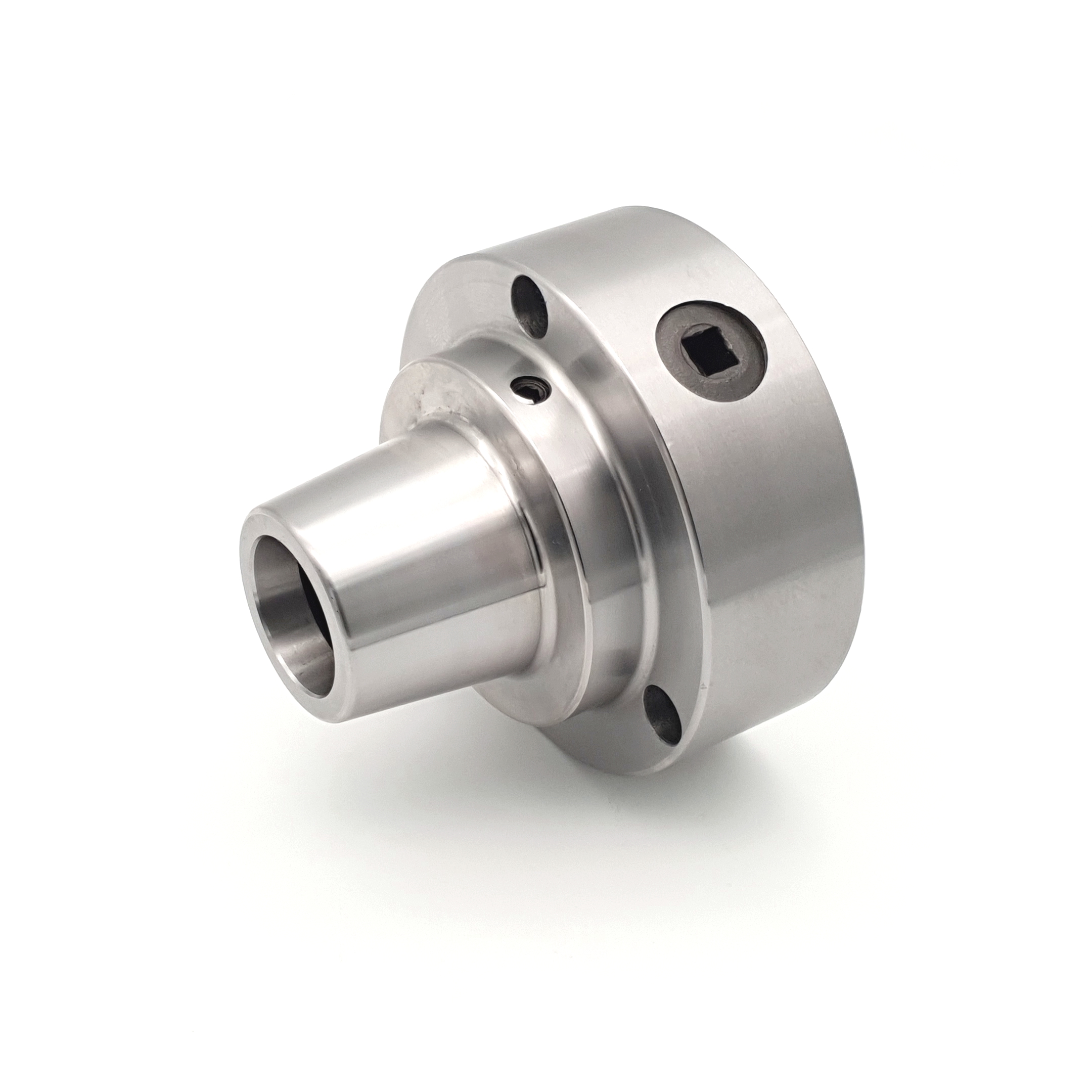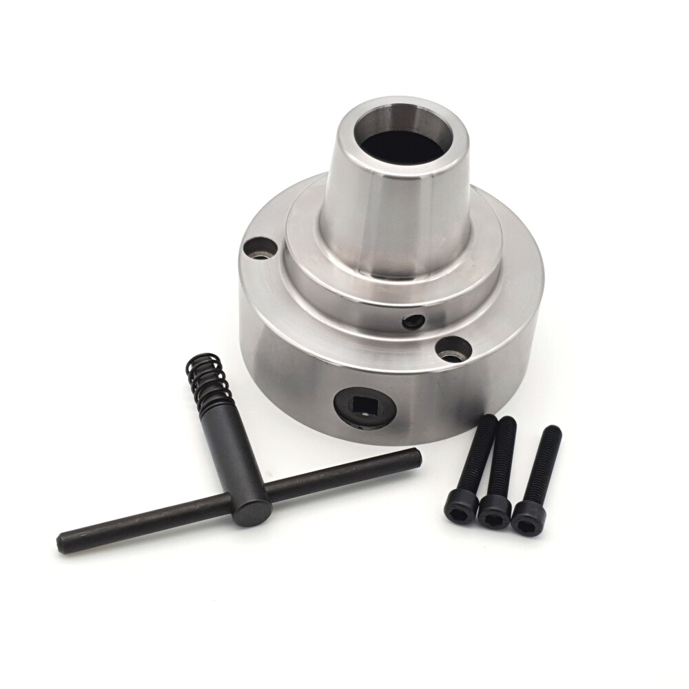 Патрон предназначен для использования на токарных станках. Крепежные размеры патрона полностью соответствуют стандартным размерам крепления 125 мм 3х-кулачкового токарного патрона для крепления на фланец шпинделя, что позволяет легко установить цанговый патрон вместо кулачкового. В патроне используются стандартные цанги 5С, которые позволяют зажимать заготовки диаметром от 1 мм до 28 мм. Цанговый зажим можно использовать и для установки фрез в шпиндель токарного патрона.