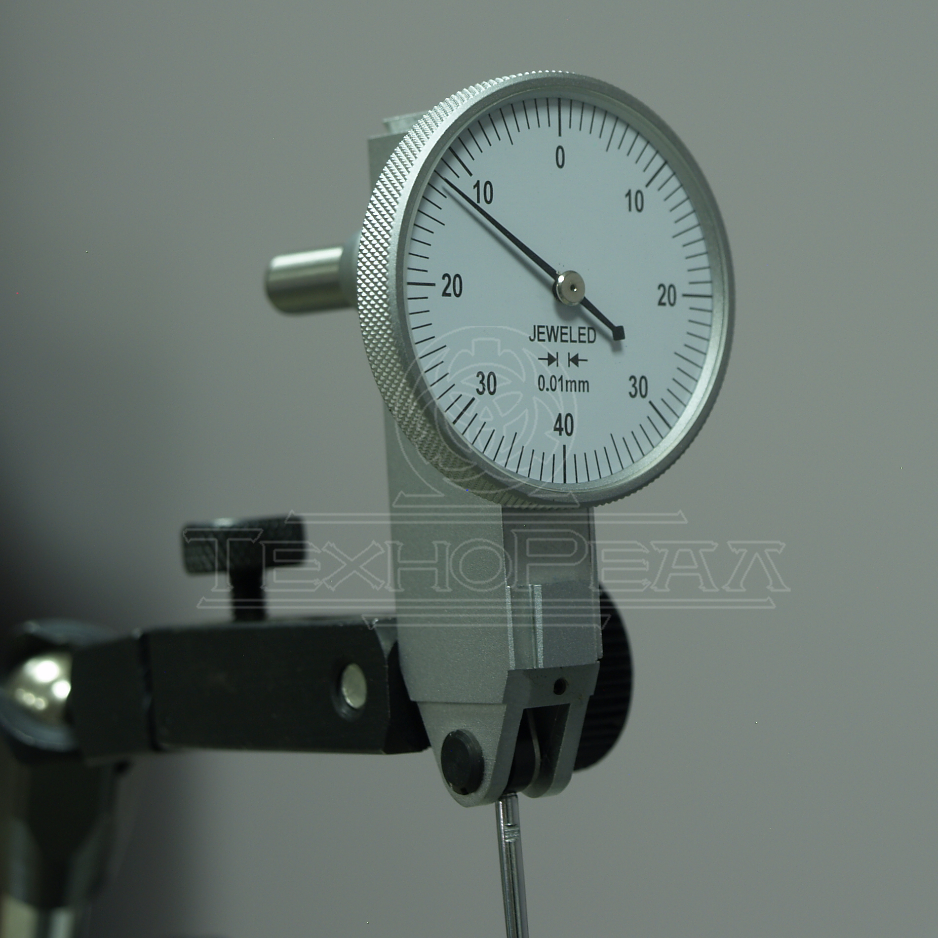 Универсальная модель тестового индикатора. Крепление к стойке может осуществляться как за цилиндрический съемный хвостовик (входит в комплект), так и за выступы "ласточкин хвост", расположенные с трех сторон индикатора.